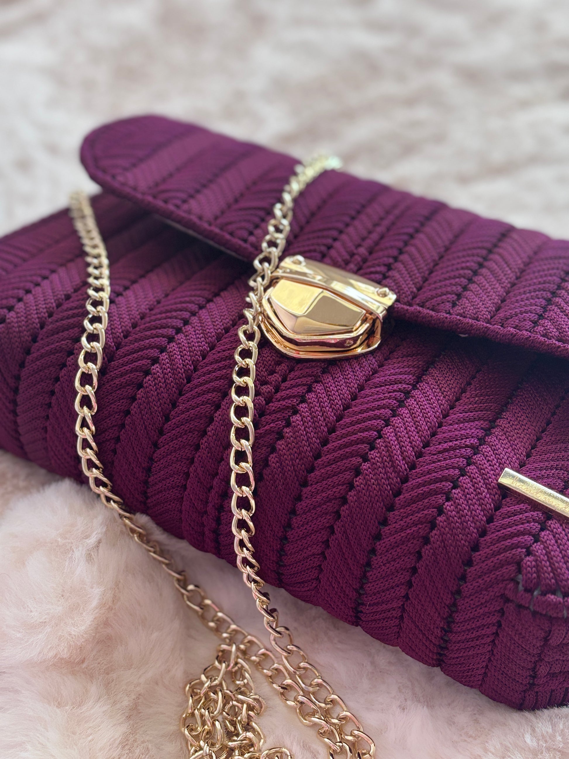 Fioletowa podszewka z bawełny, idealnie współgra z kolorem torebki, a złote dodatki dodają torebce elegancji.