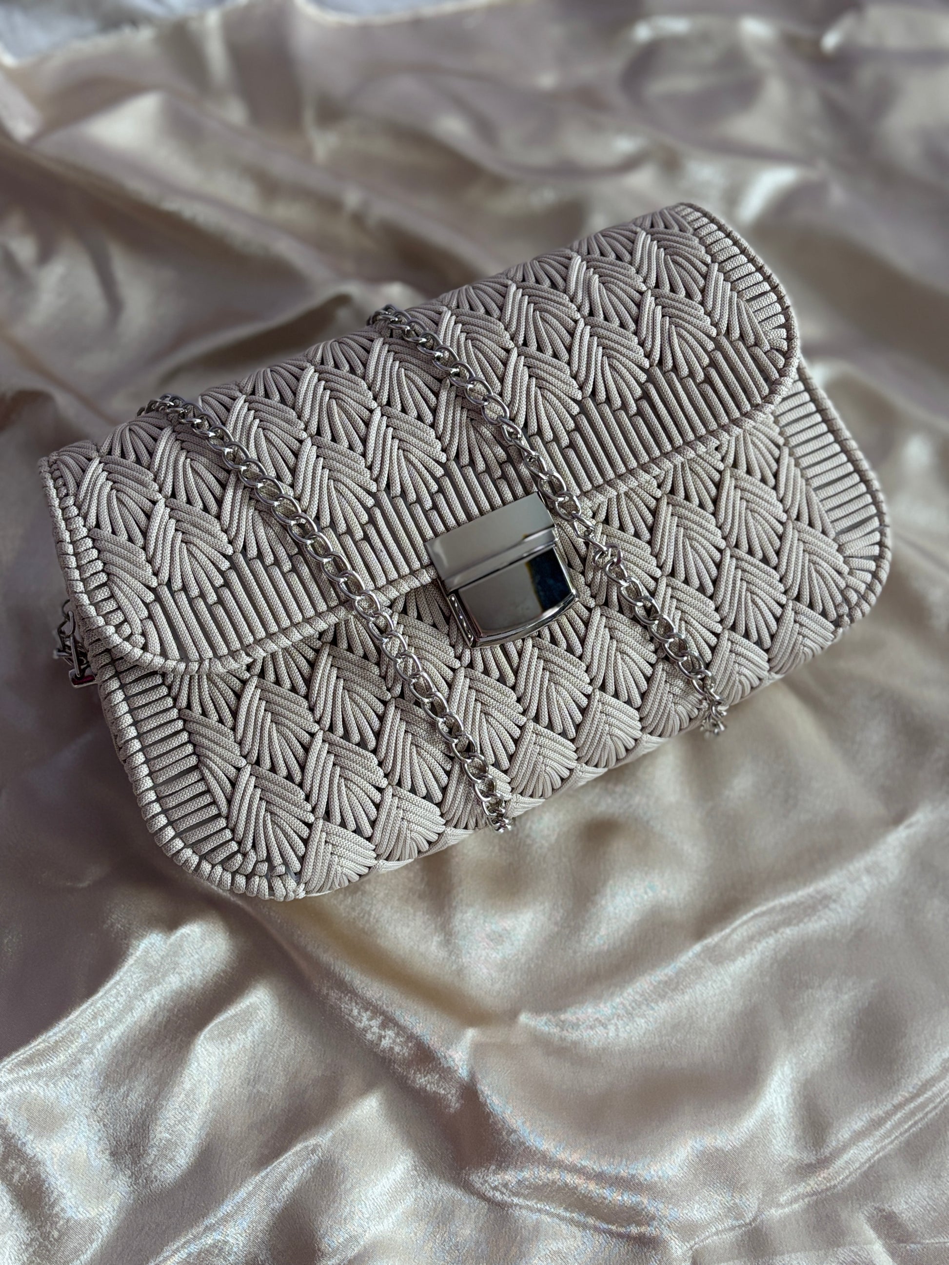 Wzór unikatowy w liście oraz srebrne okucia dodają elegancji i unikatowości